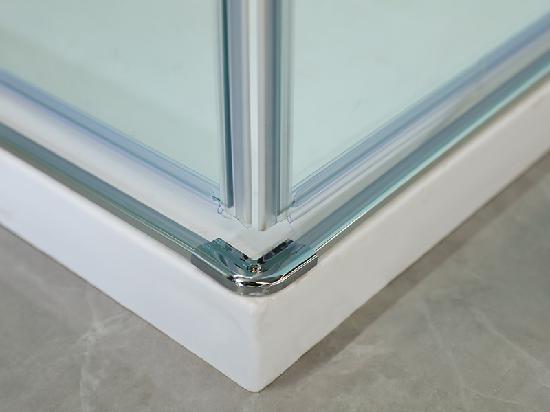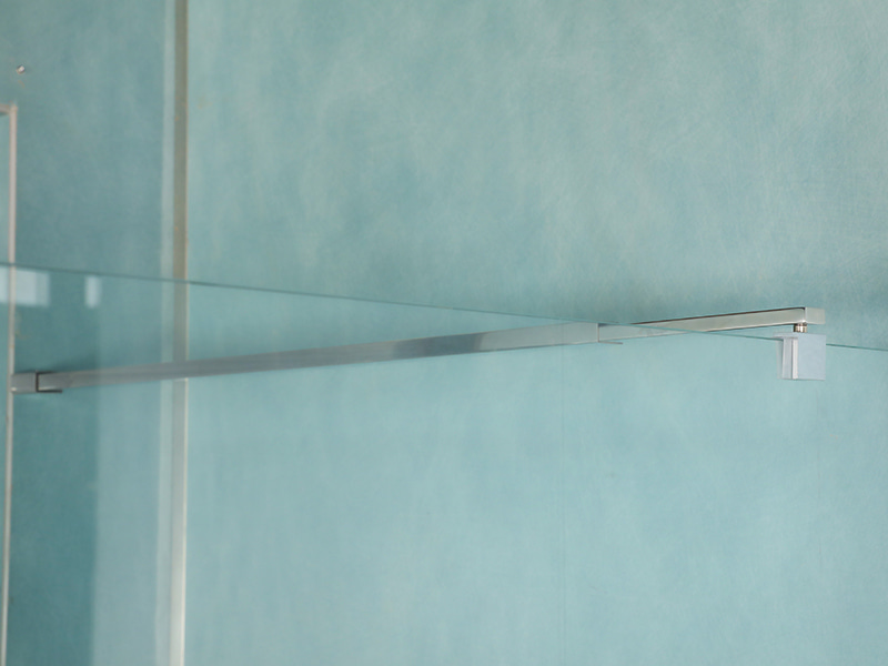 Kaca tempered bening, profil aluminium krom, pegangan lubang ganda, dengan baki